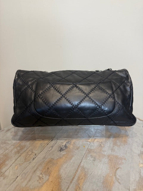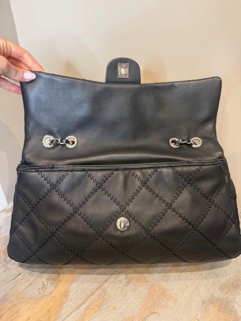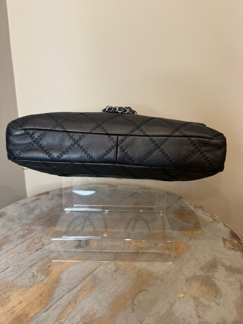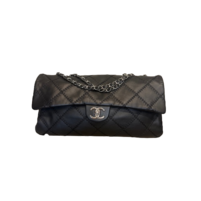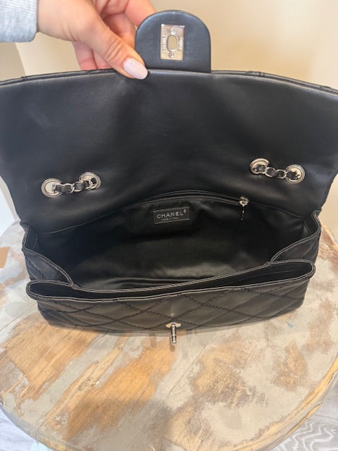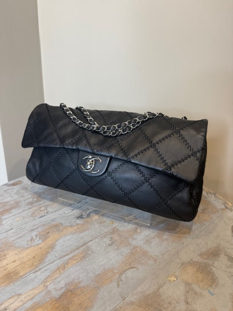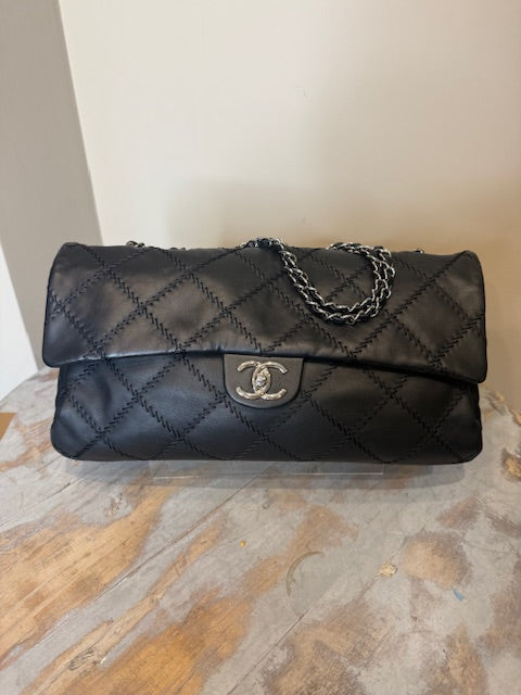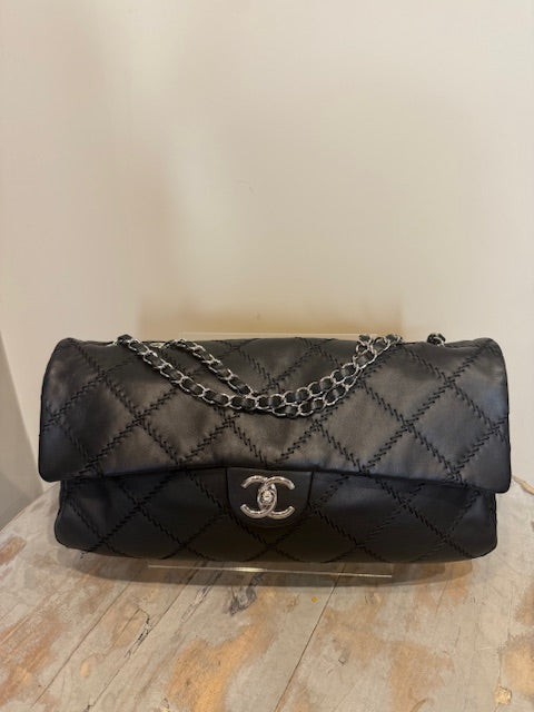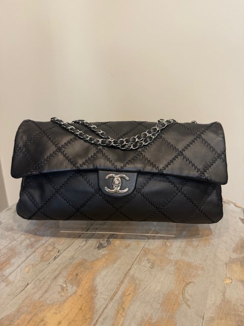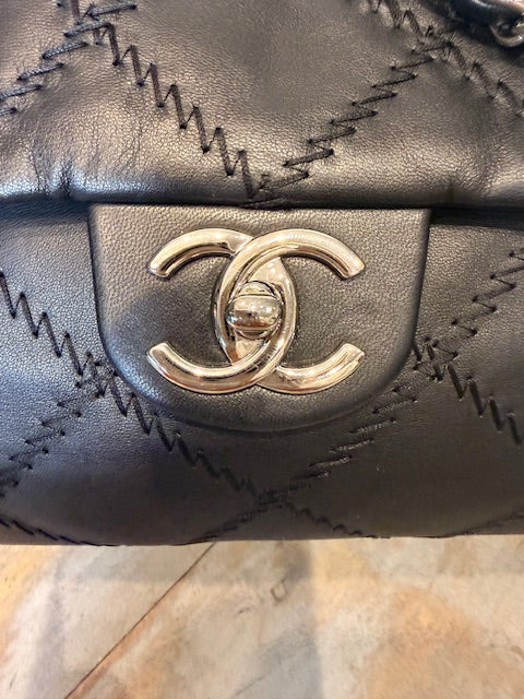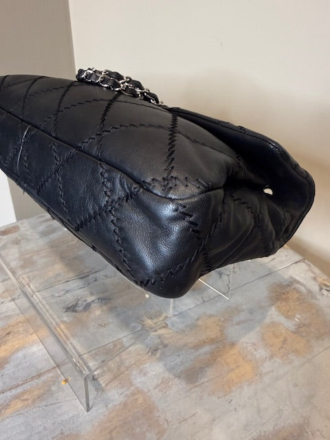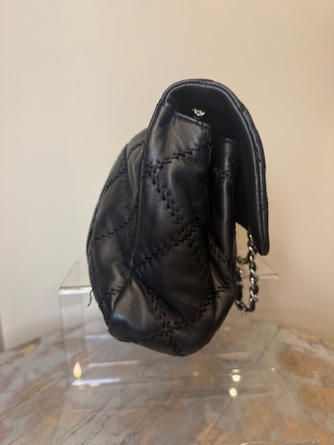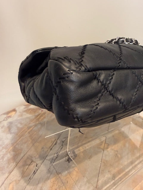 Chanel Ultra Stitch flap bag in black lambskin leather with silver hardware. Sliding chain straps can be worn long or short. Excellent condition Comes with...